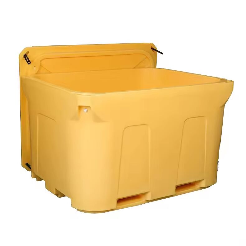 Der Behälter verfügt über eine doppelwandige Rotomolded-Konstruktion, die überlegene Haltbarkeit und Isolationsleistung bietet. Dieses Design wird häufig von Fischverarbeitern, Fischereiflotten und Unternehmen der Kühlkettenlogistik eingesetzt.